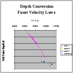 Following an analysis of 60 wells, depth conversion down through the first and deeper layers was undertaken using the Faust Power Law: